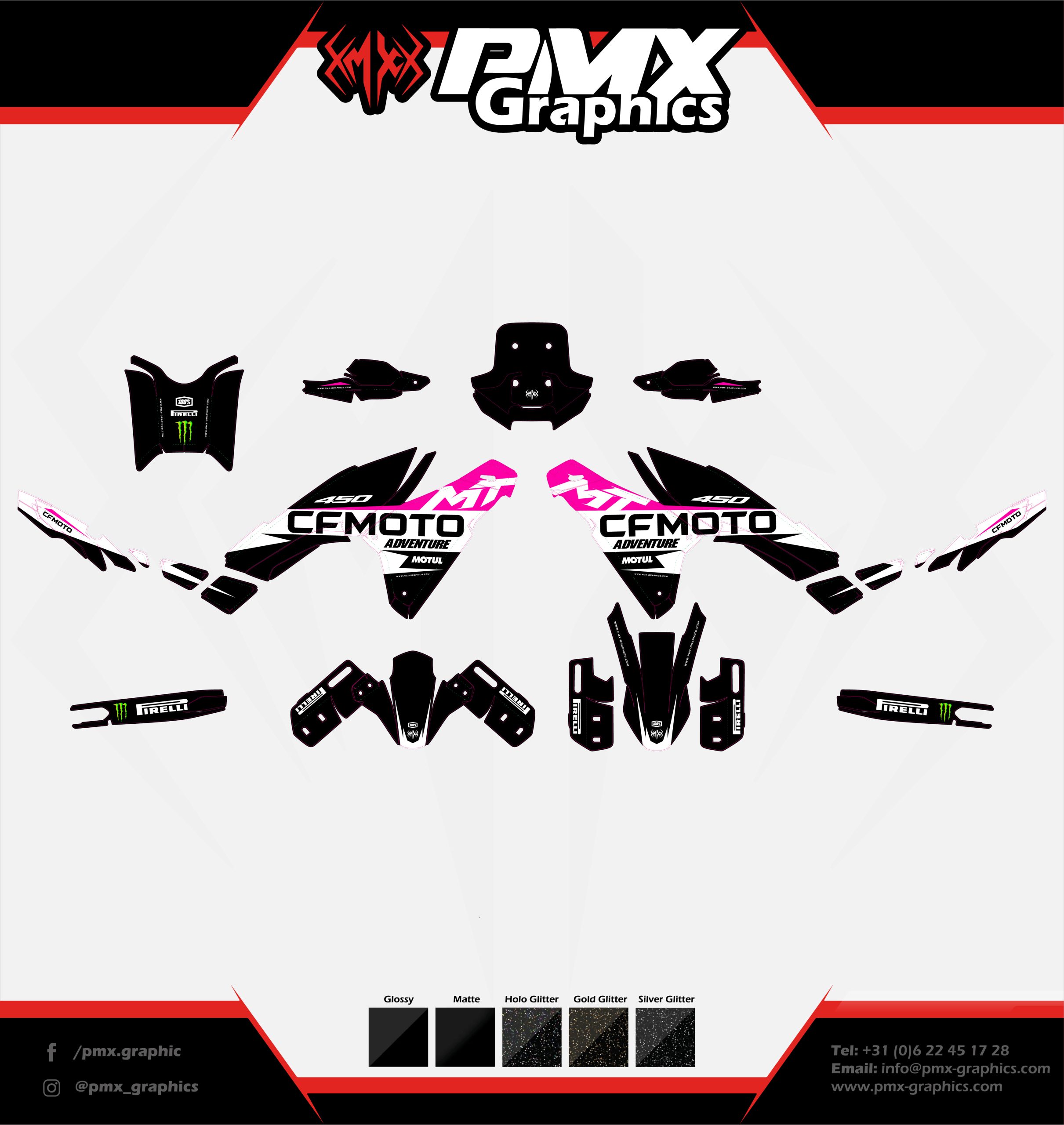 Upgrade your CF Moto with a graphic kit that reflects strength, reliability and adventure.